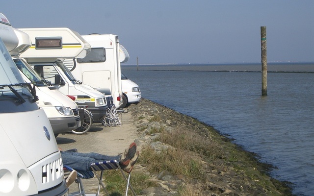 Der Stellplatz bietet einen direkten Weg zum Strand und den Urlaubern einen wunderschönen Blick auf die Inseln Wangerooge und Spiekeroog.
